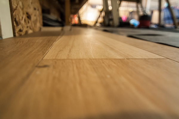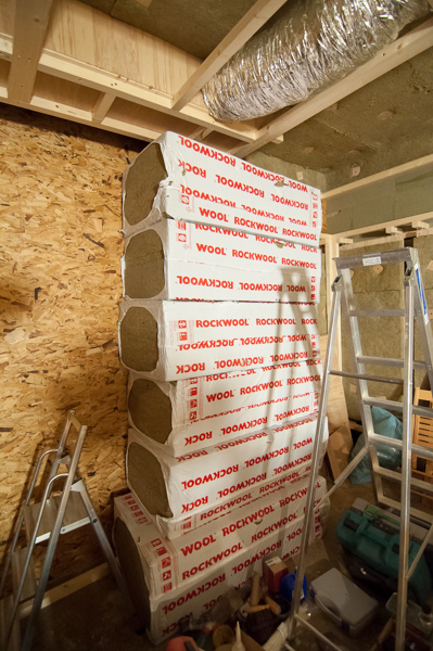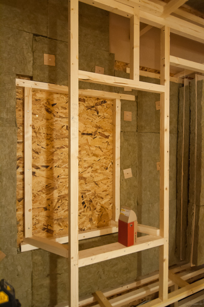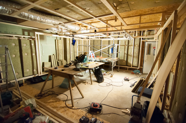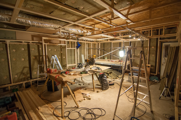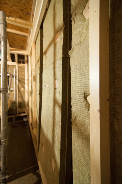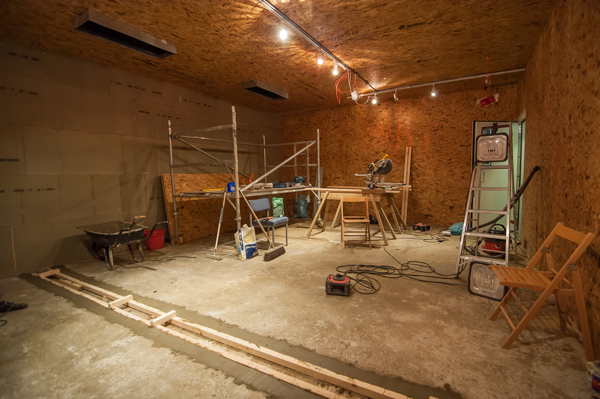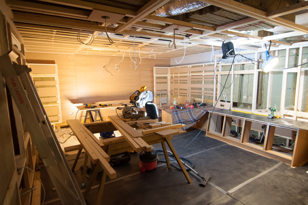 After the floor and ceiling were removed, a cable channel dug, and wood added to the internal walls to stiffen the structure: