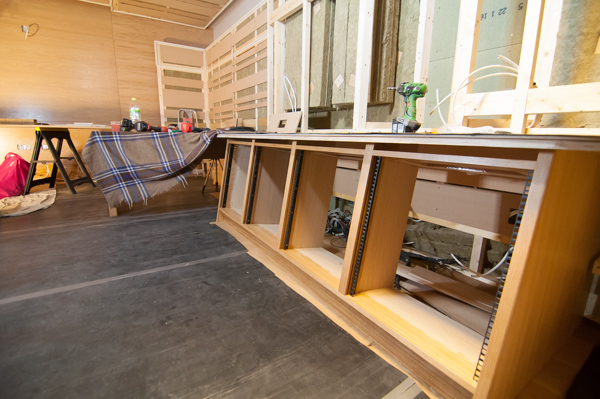 The racks being installed. Imagine these full of lovely outboard gear soon: