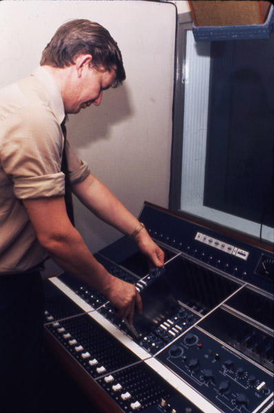 The first set of photos is from the installation of our first Neve studio console - an 8014. Looking at the photos, I'm guessing that this was in the early 1970s. It was installed originally in the studio in the Hall Undercroft, which entailed carrying it up many stairs. The studio originally featured a 4-track reel-to-reel recorder, which was later replaced by an 8-track.